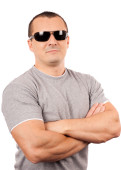 człowiek z pistoletem w kaburze