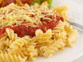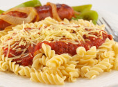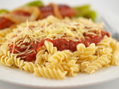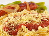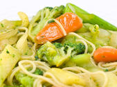 mieszać smażone warzywa i makaron w sosie światło