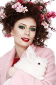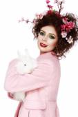 Portret dziewczyny piękną wiosnę sobie kwiaty we włosach. Stu