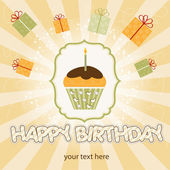 zadowolony urodziny karty z dziewczyna i ciastko