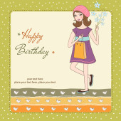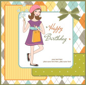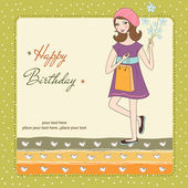 zadowolony urodziny karty z dziewczyna i ciastko