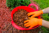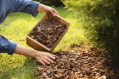 Zdjęcie "Kobieta mulgująca ziemię z żetonami kory w ogrodzie, zbliżenie" może być wykorzystywane do celów osobistych i komercyjnych zgodnie z warunkami zakupionej licencji Royalty-free. Obraz jest dostępny do pobrania w jakości wysokiej rozdzielczości do 5760x3840.