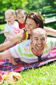 Szczęśliwa młoda para z dziećmi zabawy w parku