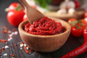 Zdjęcie "Słoik smacznej pasty pomidorowej i składników na drewnianym stole, płaski leżak" może być wykorzystywane do celów osobistych i komercyjnych zgodnie z warunkami zakupionej licencji Royalty-free. Obraz jest dostępny do pobrania w jakości wysokiej rozdzielczości do 5760x3840.