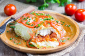 Rosyjski Sałatka z tuńczyka, quinoa, jajko, ogórek, stos, wakacje