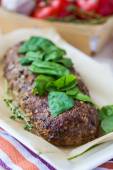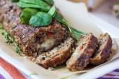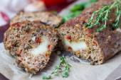Pieczeń, roll mięsa, mielona wołowina, wieprzowina z oliwki, mozzarella c