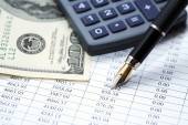 Niektóre rzeczy finansowych - kalkulator, pieniądze, cyfry