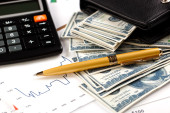 Niektóre rzeczy finansowych - kalkulator, pieniądze, cyfry, wykresy