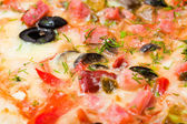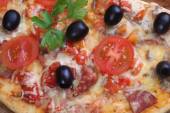 Tasty Pizza with olives closeup