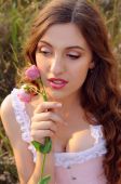 Zdjęcie "Młoda kobieta z szare oczy i długo brązowe włosy przytrzymanie różowy przepływu" może być wykorzystywane do celów osobistych i komercyjnych zgodnie z warunkami zakupionej licencji Royalty-free. Obraz jest dostępny do pobrania w jakości wysokiej rozdzielczości do 5760x3840.