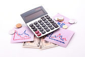 Zdjęcie "Kalkulator i dolarów na tle wykresu" może być wykorzystywane do celów osobistych i komercyjnych zgodnie z warunkami zakupionej licencji Royalty-free. Obraz jest dostępny do pobrania w jakości wysokiej rozdzielczości do 5760x3840.