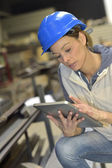 Zdjęcie "Inżynier kobieta za pomocą tabletu" może być wykorzystywane do celów osobistych i komercyjnych zgodnie z warunkami zakupionej licencji Royalty-free. Obraz jest dostępny do pobrania w jakości wysokiej rozdzielczości do 5760x3840.