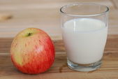jabłko i mleka na czerwonym tle