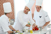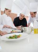 Szef szkolenia studentów w kuchni
