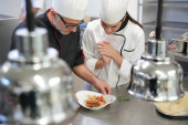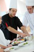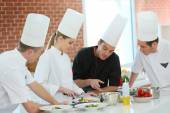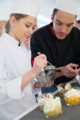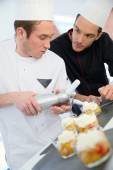 Szef kuchni z uczniem w cieście