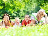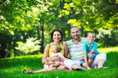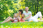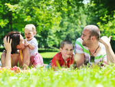 Szczęśliwa młoda para z dziećmi zabawy w parku