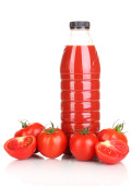 sok pomidorowy w butelce, pomidor i ketchupem na białym tle