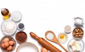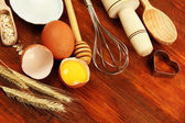 składniki żywności i naczynia do gotowania na drewniane tła