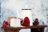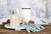 Skład zima gorący napój na tle przyrody