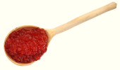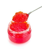 Kawior czerwony na łyżkę na białym tle
