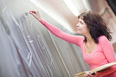 Zdjęcie "Młodego studenta pisząc na tablicy" może być wykorzystywane do celów osobistych i komercyjnych zgodnie z warunkami zakupionej licencji Royalty-free. Obraz jest dostępny do pobrania w jakości wysokiej rozdzielczości do 5760x3840.