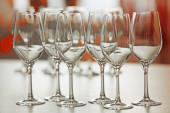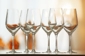 kilka pustych kieliszków do wina na niebieskim tle