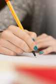 kobieta strony pisanie żółty drewna ołówek na papierze
