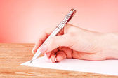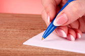 kobieta strony pisanie żółty drewna ołówek na papierze