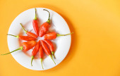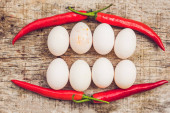Grupa odczytu i zielona papryczka chili z jajkiem na białym tle
