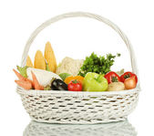 zestaw warzyw w wricker kosz na białym tle