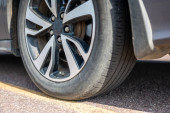 Pomoc drogowa potrzebna do przebicia opony. Zbliżenie opony płaskiej samochodu