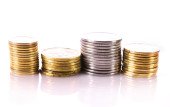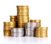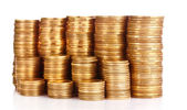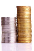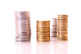 wiele monet w kolumnie na białym tle
