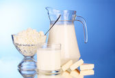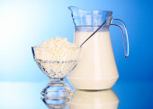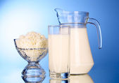 Zdjęcie "Twaróg miski z mlekiem na niebieskim tle" może być wykorzystywane do celów osobistych i komercyjnych zgodnie z warunkami zakupionej licencji Royalty-free. Obraz jest dostępny do pobrania w jakości wysokiej rozdzielczości do 5760x3840.