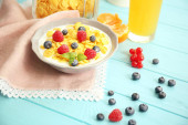 Zdjęcie "smaczne płatki kukurydziane i owoców" może być wykorzystywane do celów osobistych i komercyjnych zgodnie z warunkami zakupionej licencji Royalty-free. Obraz jest dostępny do pobrania w jakości wysokiej rozdzielczości do 5760x3840.