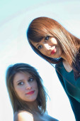 dziewczyny w czarno-białe sukienki z stwarza niesamowite patrząc na t