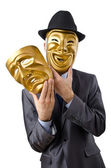 Dziewczyna w złotej masce izolowane na białym