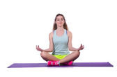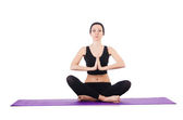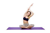 Młoda kobieta robi ćwiczenia sportowe izolowane na białym