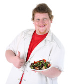 człowiek gotowanie z pomidor, ogórek, papryka i cebula