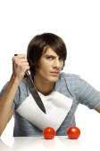 Zdjęcie "człowiek gotowanie z pomidor, ogórek, papryka i cebula" może być wykorzystywane do celów osobistych i komercyjnych zgodnie z warunkami zakupionej licencji Royalty-free. Obraz jest dostępny do pobrania w jakości wysokiej rozdzielczości do 5760x3840.