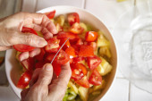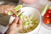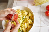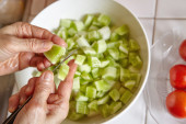 Zdjęcie "Przygotowanie warzyw do sałatki" może być wykorzystywane do celów osobistych i komercyjnych zgodnie z warunkami zakupionej licencji Royalty-free. Obraz jest dostępny do pobrania w jakości wysokiej rozdzielczości do 5760x3840.