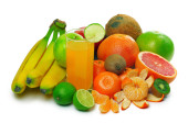 Granat, mandarynka, banan, pomarańczowy, kiwi, grejpfruta i