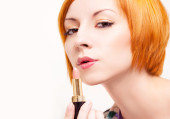piękna, młoda dziewczyna się jej usta szminką