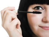 piękna młoda kobieta stosowania makijażu pędzelkiem