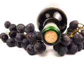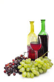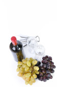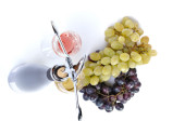 butelka wina do kieliszków wina i winogron na białym tle w kolorze białym, aperitive