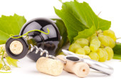 butelka wina do kieliszków wina i winogron na białym tle w kolorze białym, aperitive