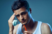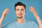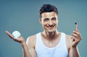 fryzjer człowiek styl życia szczotka tło szczotka czesanie czesanie zbliżenie tło broda pielęgnacja grzebień utrata gospodarstwa włosy żółty przystojny uśmiechnięty piękno twarz włosy studio portret patrząc fryzurę