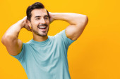 Zdjęcie "fryzjer człowiek styl życia szczotka tło szczotka czesanie czesanie zbliżenie tło broda pielęgnacja grzebień utrata gospodarstwa włosy żółty przystojny uśmiechnięty piękno twarz włosy studio portret patrząc fryzurę" może być wykorzystywane do celów osobistych i komercyjnych zgodnie z warunkami zakupionej licencji Royalty-free. Obraz jest dostępny do pobrania w jakości wysokiej rozdzielczości do 5760x3840.