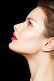 Widok z boku bliska piękno z czystej skóry idealna jasny makijaż
