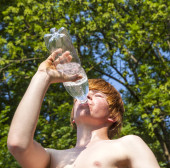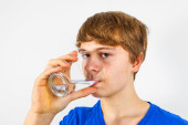 chłopiec pitnej wody ze szkła