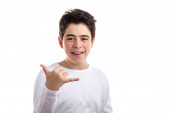 Zdjęcie "kaukaski chłopiec robi shaka gest" może być wykorzystywane do celów osobistych i komercyjnych zgodnie z warunkami zakupionej licencji Royalty-free. Obraz jest dostępny do pobrania w jakości wysokiej rozdzielczości do 5760x3840.